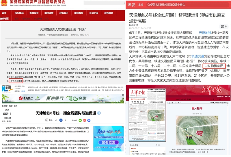 中鐵物資助力天津首條無人駕駛地鐵全線“洞通”受媒體熱議